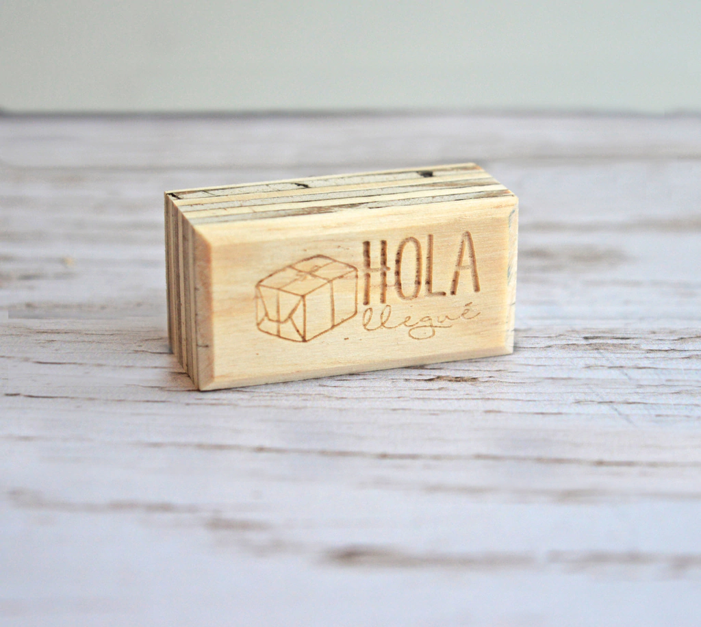 Sello prediseñado de catálogo en base de madera multilaminado de 2x4 cm.